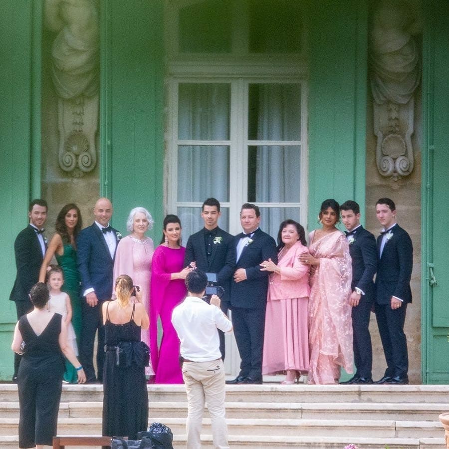 Entre ellas se ve que Joe usó un traje completamente negro. Sophie por su parte fue rodeada por varias personas para que no pudieran ver su vestido, pero en las tomas destacó un traje largo, con mangas.
