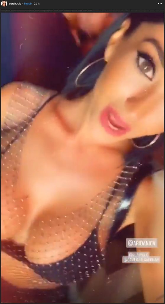 La modelo Aura Ruiz, madre de un hijo con el futbolista español Jese Rodríguez, que pasó por el Real Madrid y París Saint-Germain, se llevó todas las miradas gracias a su osado atuendo durante una fiesta este fin de semana.