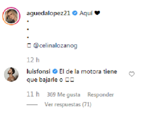 “El de la motora [motorista] tiene que bajarle o ? [puño]”, escribió Luis Fonsi en los comentarios de la fotografía de su esposa que ya cuenta con más de 12.000 ‘Me gusta’.