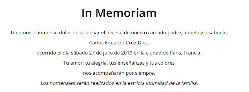 Así detallaron sus familiares en el portal del gran Maestro del arte.