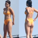 En una series de fotos compartidas, la socialité y esposa de Kanye West lució un elegante vestido de terciopelo de color marrón y con un corte en la falda el cuál le marcó toda su MALETOTA. Kardashian apostó por complementar el look con una cartera gris y unas gafas de sol.