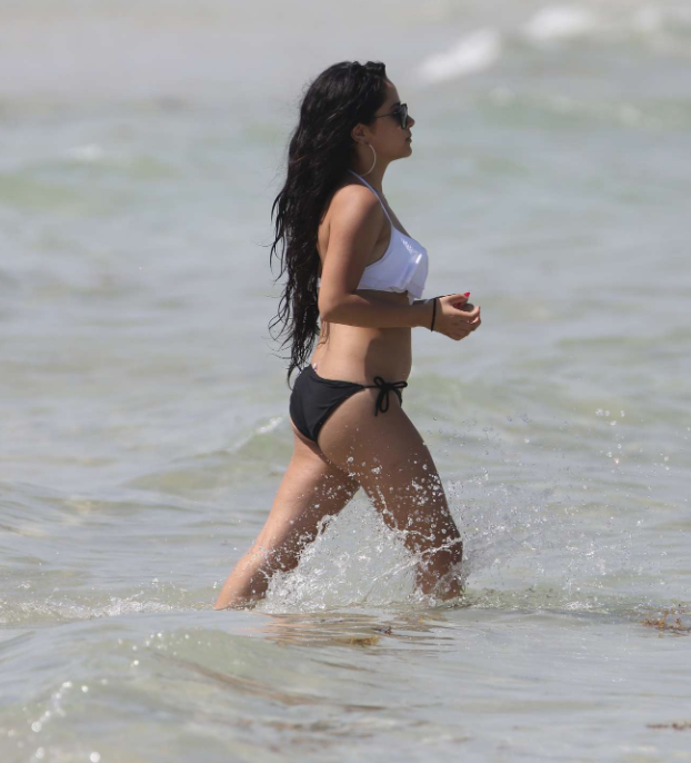 La intérprete se fue a disfrutar de un día de playa y como muchos famosos no pudo escaparse de los reporteros gráficos. Las fotografías que están rodando en la plataforma 2.0 han levantado sospechas de un embarazo.