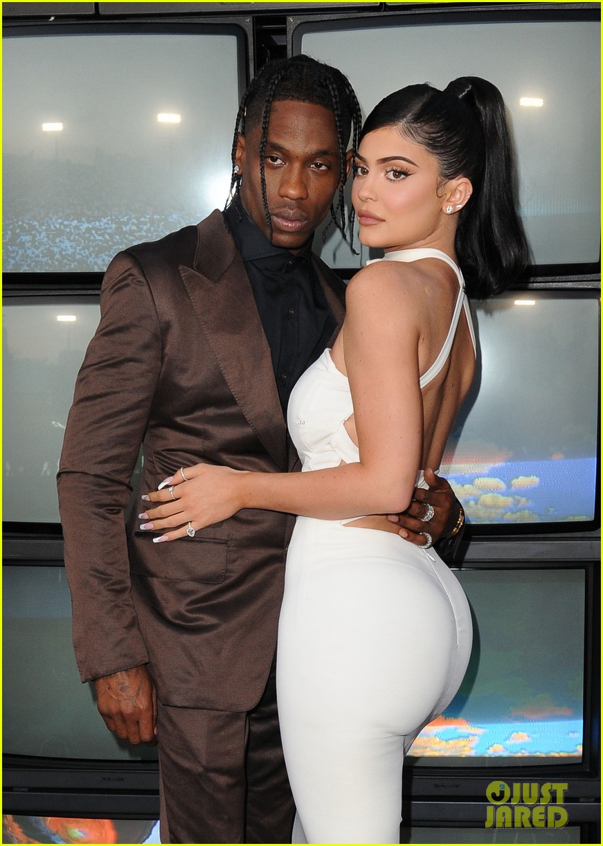 El rapero contó el apoyo de su pareja y madre de su hija, Kylie Jenner, quien lució espléndida pero un poco incómoda con un ajustado vestido que por poco la dejó topless.