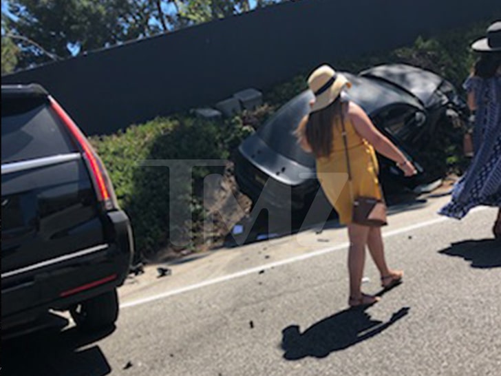 Testigos presenciales dicen que Robin salió del SUV y caminó hacia el otro vehículo, que yacía al costado de la carretera… casi volcado de lado. Afortunadamente, esto se ve mucho peor de lo que realmente era, ya que nadie parece haber sufrido lesiones graves.