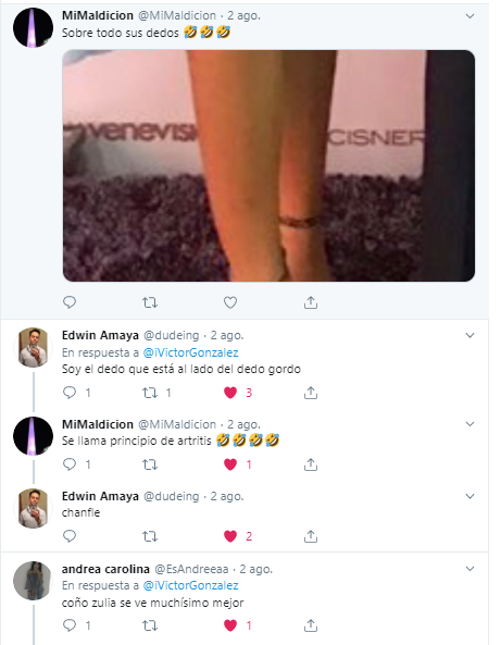 Algunos de los comentarios que recibió Thalía OIvino fueron: «Las patas parecen una hallaca mal amarrada», «Qué pies tan horribles», «¿No había otras sandalias que te favorecieran?», «Maltrato a los juanetes», «Te recomiendo usar zapatos cerrados».
