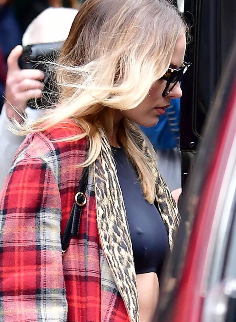 En las imágenes captadas, se puede notar que Robbie no le gusta usar brassier por lo que sus pezones se marcan siempre debajo de sus ostentosos atuendos de diseñadores. Además, tiene un piercing en el pezón, que no tenía tiempo atrás.