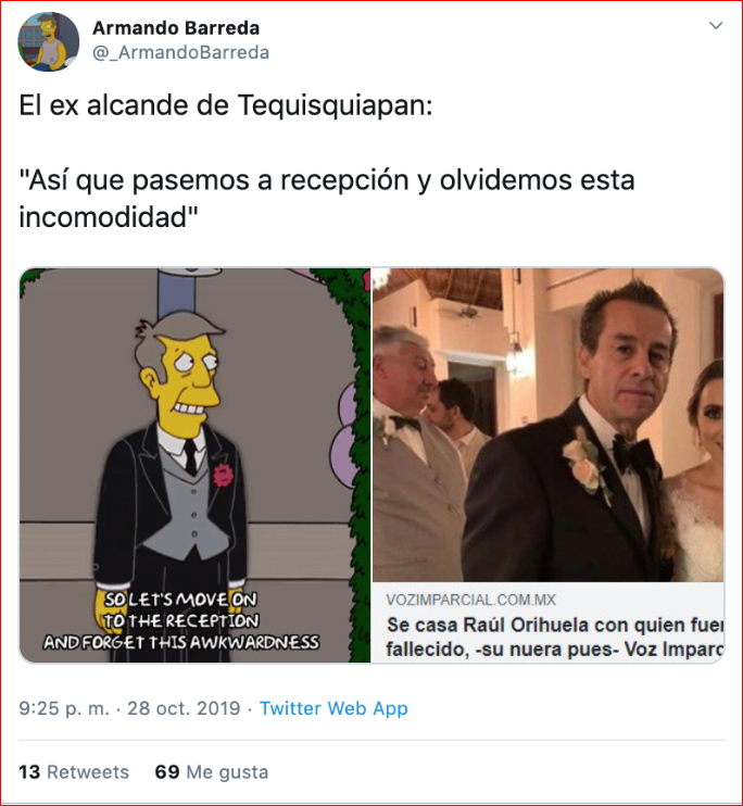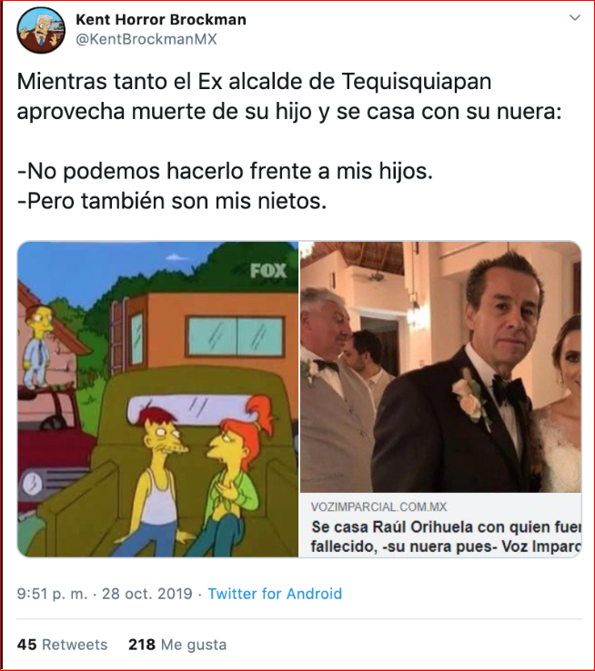No desearás la mujer del prójimo, dice la biblia, pero, ¿que pasa si le tienes ganas a la esposa de tu hijo?, así le pasó un ex alcalde en México, quien ha sido duramente criticado en las redes sociales. Todo ocurrió en la ciudad de Tequisquiapan, considerada como Pueblo Mágico, situada en el Estado de Querétaro. Quien fuese alcalde de ese lugar en el periodo 2015- 2018, Raúl Orihuela decidió contraer nupcias con la que fue su nuera y madre su de sus nietos.
