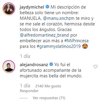 Por su parte, Alejandro Sanz comentó la misma publicación. «Yo fui el afortunado acompañante de la mujercita más bella del mundo», escribió, dejando claro lo feliz que se siente por haber tenido a Manuela a su lado.