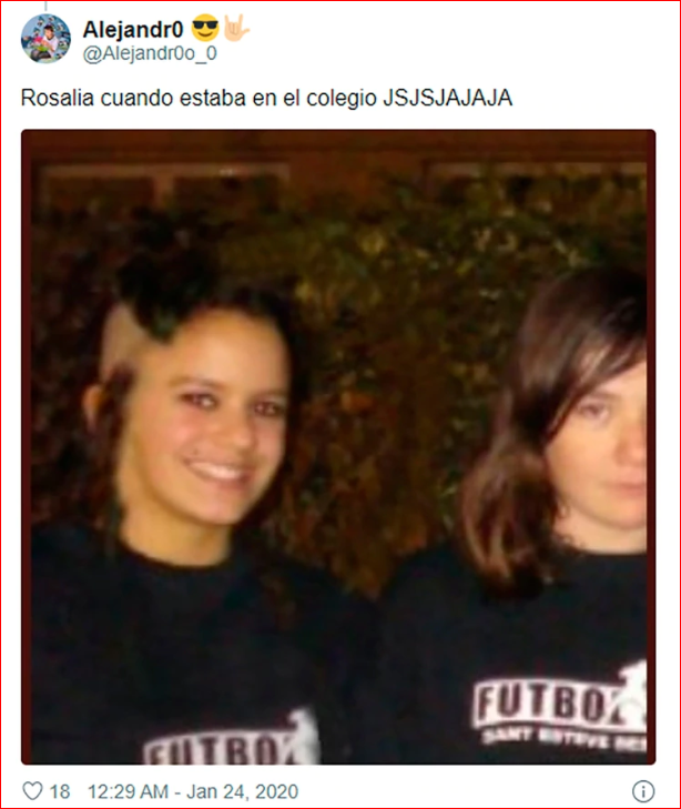 Una fotografía de ella durante su adolescencia ha sorprendido a todos sus fanáticos. En relación a un hilo de Twitter en el una usuario pregunta a sus seguidores por personajes famosos que hayan ido a su colegio, la usuario Clara Isart respondía que “Rosalía”, compartiendo una imagen de esta época y sin duda podemos confirmar que la cantante de ‘El Mal Querer’ es como el buen vino.
