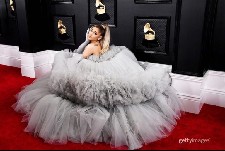 La querida y afamada Ariana Grande acaparó las miradas desde que llegó. La actriz y cantante optó por llevar un vestido de tull color gris y el cabello recogido.
