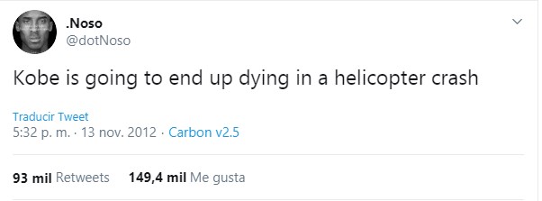 «Kobe terminará muriendo en un accidente de helicóptero», escribió este usuario.
