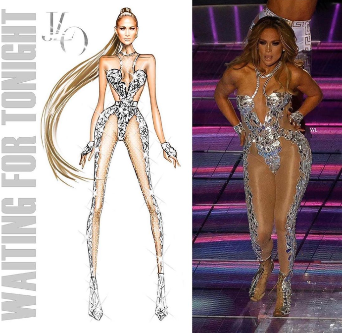 Una vez más Versace estuvo encargado de confeccionar las distintas capas, pues la intérprete tan solo tenía 7 segundos para cambiarse. Desde septiembre se iniciaron las conversaciones, justo en el camerino en el que se encontraba JLo para su próxima película.