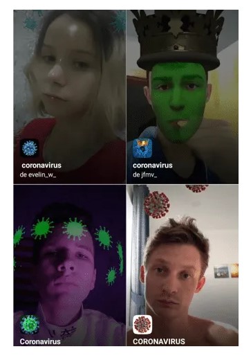 A pesar del «escándalo» que ha causado tal pandemia en todo el mundo, los internautas, sobre todo jóvenes; aprovecharon la oportunidad para crear filtros y se usan en las historias de la red de la camarita.