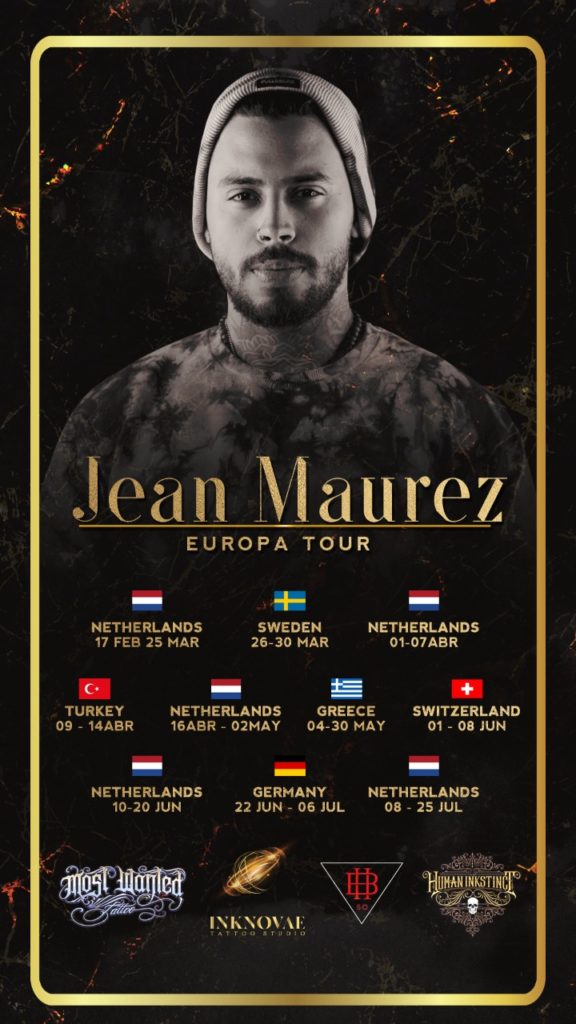 Jean, es tatuador profesional, en el arte dérmico, sus creaciones no son solo simples marcas corporales; son una expresión que simbolizan un sentimiento para el que se tatúa y una caricia absolutamente sublíme para todo aquel que observa sus diseños. Para Jean Maurez, el arte no admite equivocaciones, cada uno de sus tatuajes es único e indeleble.