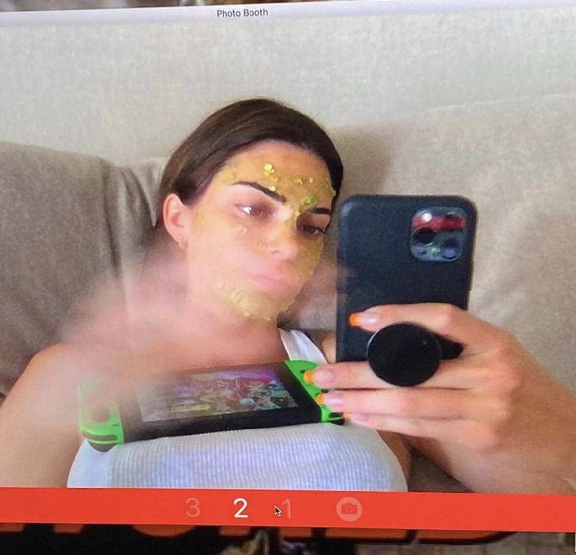 En bikini, camiseta y con una mascarilla en la cara; así aprecio la top model en las fotos publicadas. Además, un videojuego la acompaña. ¿Te gustaría conectarte a jugar con ella?