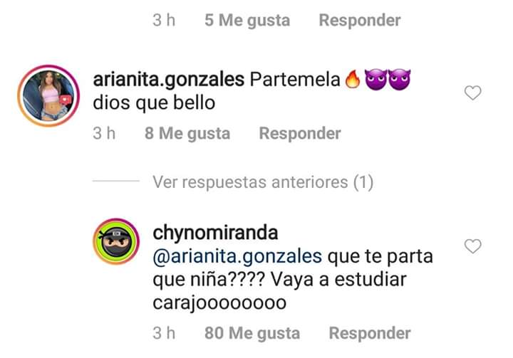 Sin titubeo alguno, el artista ganador de un Latin Grammy no dudó en responderle a su fiel seguidora «¿Qué te parte qué niña? Vaya a estudiar», afirmó Miranda respuesta.