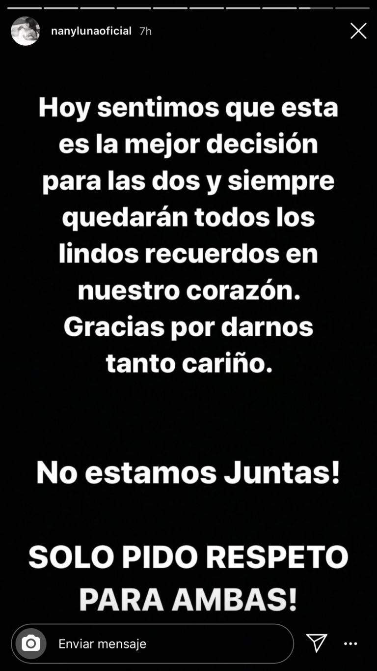 “Hoy sentimos que esta es la mejor decisión para las dos y siempre quedarán todos los lindos recuerdos en nuestro corazón”, es parte de lo que reza el texto.