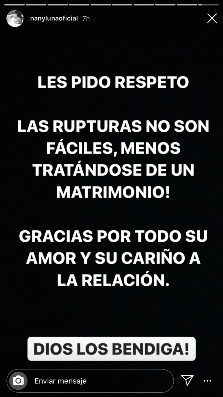 Además, se sirvió en pedir respeto para ambas; “las rupturas no son fáciles, menos tratándose de un matrimonio”.
