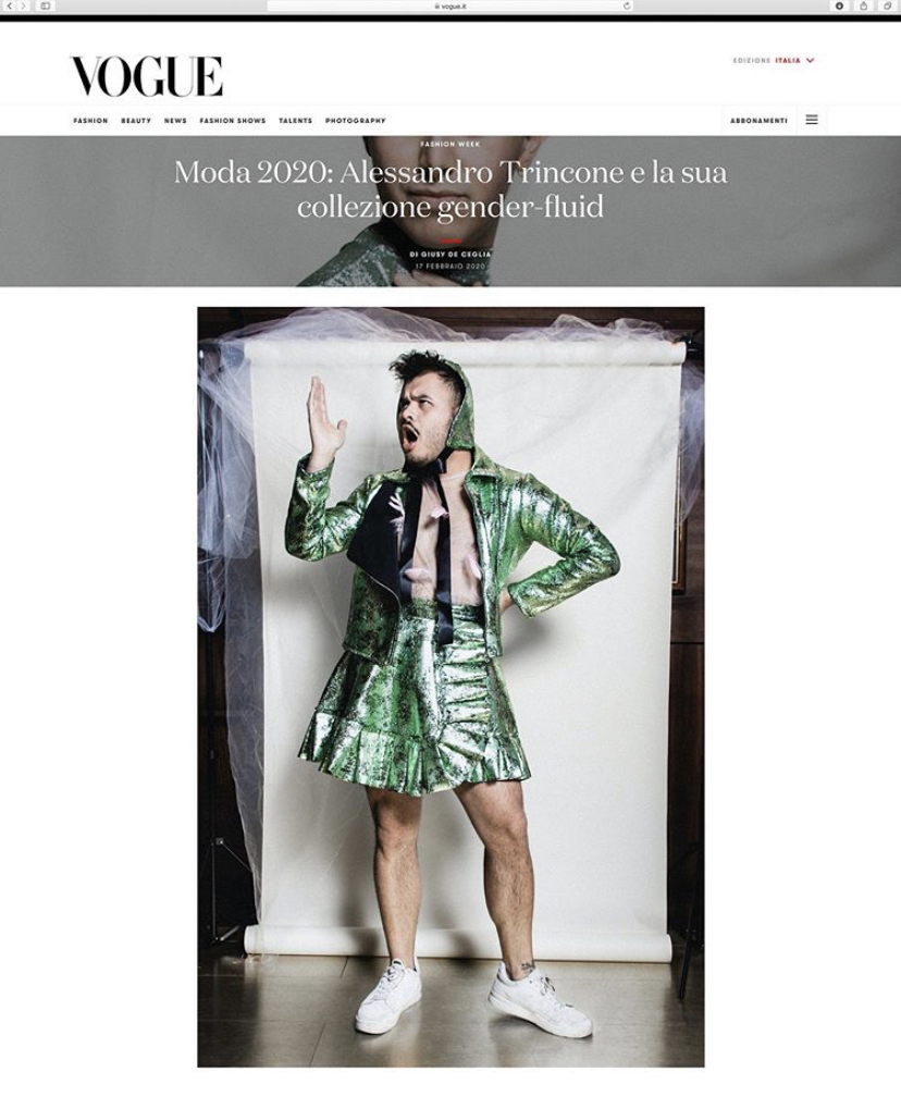 También fue publicado en un artículo para Vogue Italia (VOGUE.IT) como modelo en NYFW para el diseñador italiano Alessandro Trincone, quien vistió a Young Thug para la portada de su disco “No my name is Jeffery” con la intención de redefinir la masculinidad.