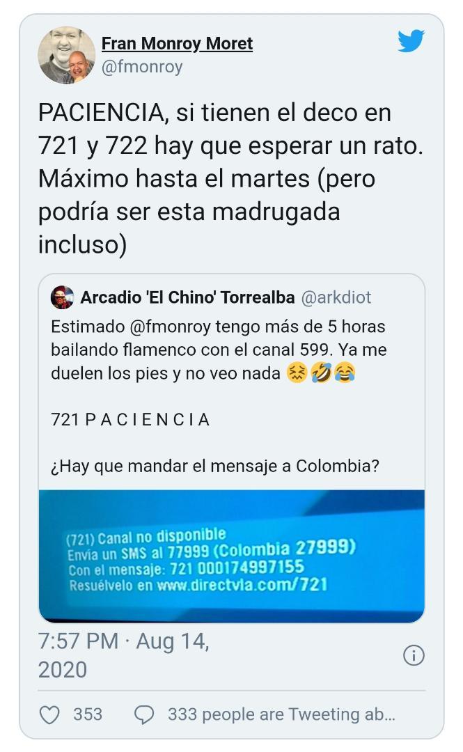 Ante esto, el periodista especializado en telecomunicaciones, Fran Monroy explicó a través de su cuenta oficial en la red social de Twitter los motivos por los que algunos decodificadores no se han activado con la señal de DIRECTV.