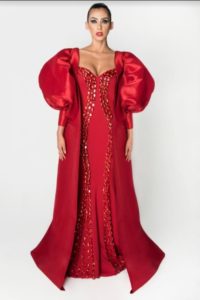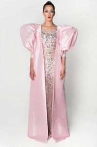 La muestra “VOLVER A” la componen diecinueve diseños con una paleta de colores; rosa, verde, lila, rojo, blanco y otros que hacen referencia a esta edición Primavera-Verano. Las perlas, cristales y otros elementos jugaron un papel importante; al igual que las capas, algo que visualmente impregnó la pasarela con un sutil misterio y sensualidad, que aparte de ser un outfit magnífico, brinda seguridad y empodera a la mujer.