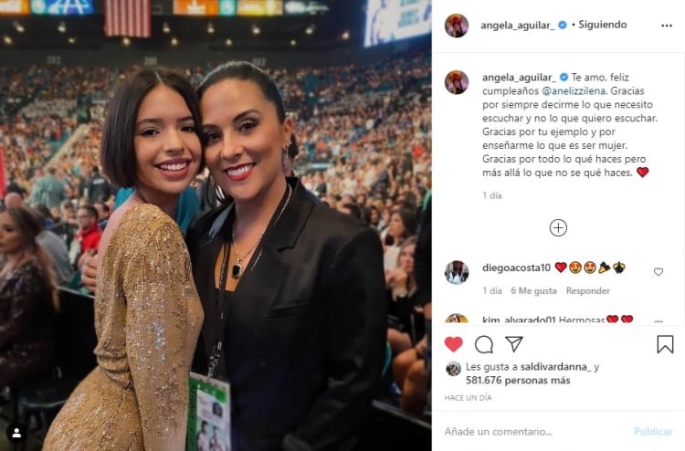 “Te amo, feliz cumpleaños @anelizzilena. Gracias por siempre decirme lo que necesito escuchar y no lo que quiero escuchar. Gracias por tu ejemplo y por enseñarme lo que es ser mujer. Gracias por todo lo que haces pero más allá lo que no se qué haces”, mencionó junto a la imagen Ángela Aguilar.