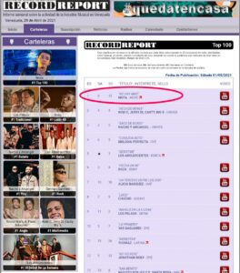 Es justamente esta última la que hoy lo vuelve a poner en la palestra noticiosa; pues con su tema “No hay más” alcanzó el #1 en el renglón General (Top 100) del Record Report. Desde que debutó en la mencionada cartelera musical se mantuvo en el Top 10; y esta semana finalmente se adueñó del puesto principal. “Me hace feliz saber que estoy en el camino correcto, que el trabajo duro que hemos venido haciendo está dando sus frutos”, comenta el cantante.