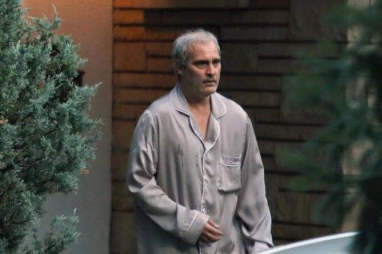 Con pelo canoso, pijama manchada y aspecto de no estar pasando por una buena racha. Así es como vemos a Phoenix en la instantánea del rodaje en Montreal que ha compartido la cuenta de Twitter Letterboxd.