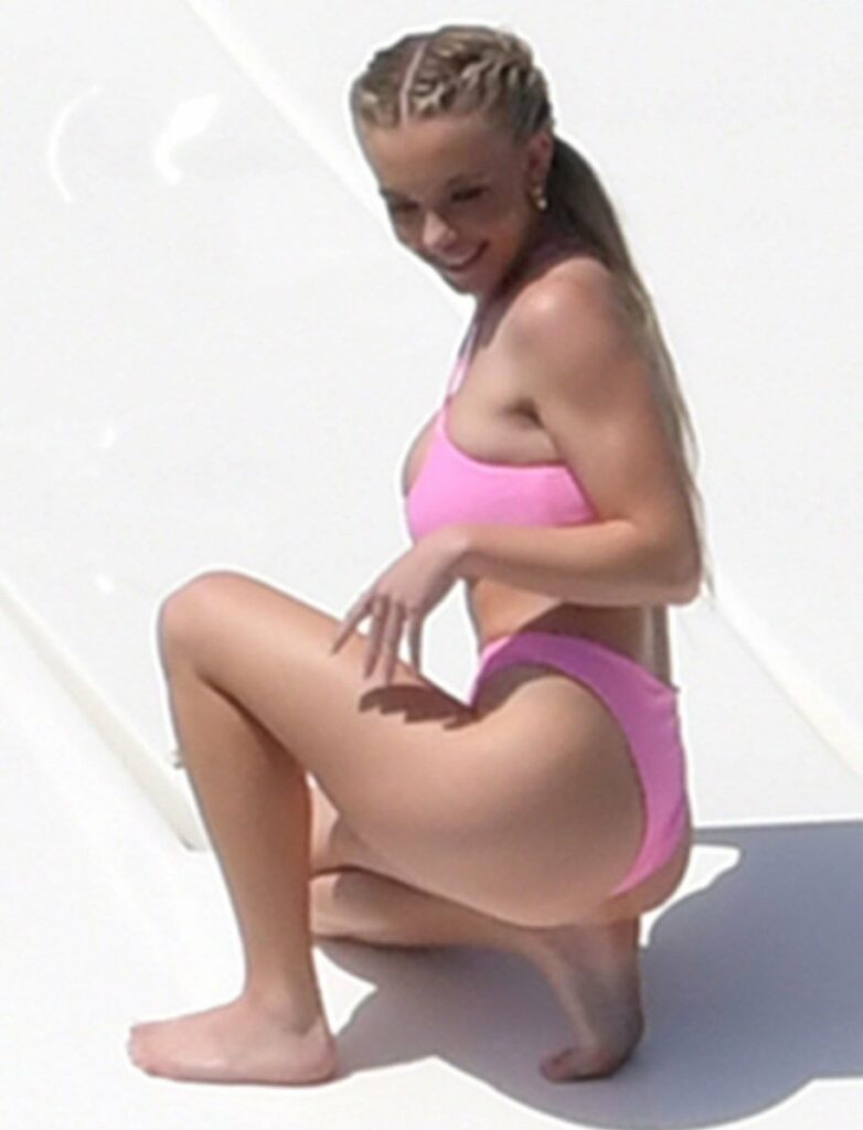 En las fotografías, la sensualísima actriz de 23 años lució un ajustado bikini rosado, que hacía notar descaradamente su retaguardia. Las imágenes fueron publicada por el portal Celeb Jihad.