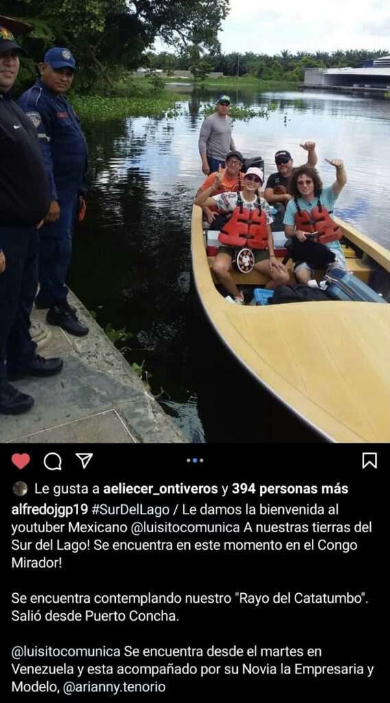 El youtuber mexicano Luisito Comunica visitó el Relámpago del Catatumbo, en la cuenca del lago de Maracaibo en Venezuela a su regreso al país.