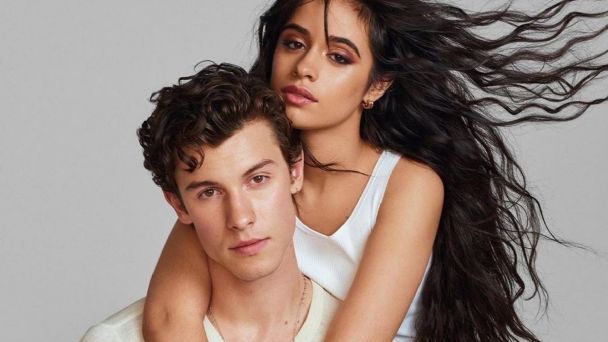 La cantante cubana lució una falda de tul amarillo pálido de escándalo, del diseñador Christian Siriano, y un top blanco informal, con su nuevo look de cabello y un delineado amarillo en los ojos. Shawn lució una camisa con transparencias y escote de pico, con unos pantalones anchos color beige.