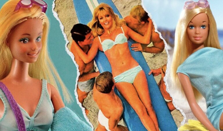 De acuerdo con los rumores que Mattel nunca confirmó -pero que tampoco negó rotundamente-, la inspiración para Malibú fue Sharon Tate. La actriz, que en 1969 fue asesinada brutalmente por la secta de Charles Manson cuando estaba embarazada de ocho meses, lanzó su carrera en el cine un par de años antes del lanzamiento de la muñeca con un personaje llamado, justamente, Malibú, en la película No hagan olas (1967). Allí, Tate se pasa la mayor parte de las escenas en bikini debido a que la comedia transcurre casi todo el tiempo en la playa. Descalza, con su pelo largo y rubio al viento y bronceada, su personaje pareciera la versión humana de la Barbie presentada cuatro años después. Pero, claro, la empresa nunca reconocería que una mujer asesinada en circunstancias tan sórdidas era el origen de su nuevo producto.