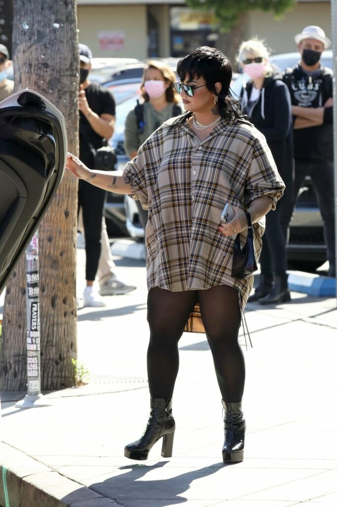 Demi estuvo de paseo en la tienda Dolls Kill; de lo más sonriente y agradable se comportó ante los fotógrafos. La también actriz se dejó ver con un look muy diferente al habitual, que incluye nuevo estilo en su cabello y también de vestir.