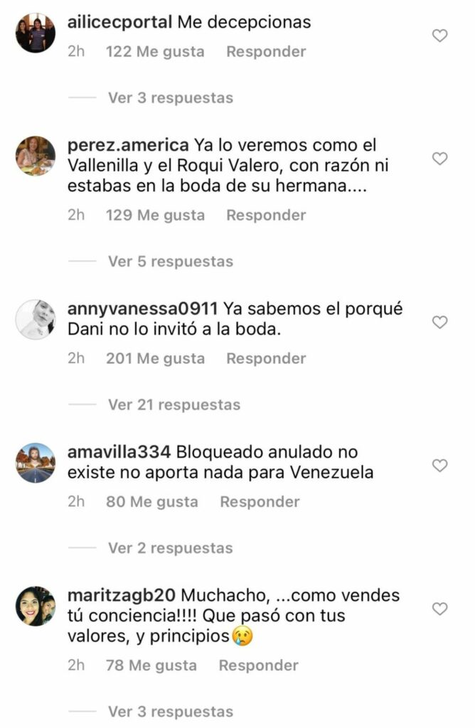 Dicha publicación rápidamente generó malos comentarios dirigidos al hijo del actor Daniel Alvarado, muchos de sus seguidores lo compararon con otros artistas «revolucionarios» como el animador Winston Vallenilla y el actor/cantante Roque Valero.