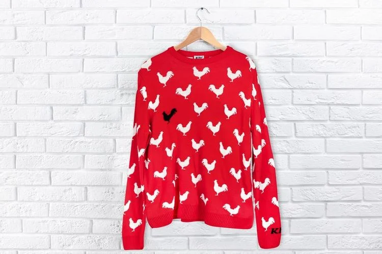 Tal vez no haya una declaración de sastrería más conocida que el icónico (si eres un Windsor, tal vez prefieras «infame») suéter negro de oveja, que llevó a innumerables eventos con el Príncipe Carlos en los años 80 y 90. Y ahora, por el módico precio de 35 libras (unos cincuenta dólares), cuyos beneficios se destinan a la Fundación KFC, que apoya a organizaciones juveniles de base en todo el Reino Unido, puedes conseguir el equivalente de KFC: un suéter negro de pollo llamado acertadamente «The Spencer». También es de un rojo llamativo, con el mismo patrón que el original… aunque con un toque avícola.