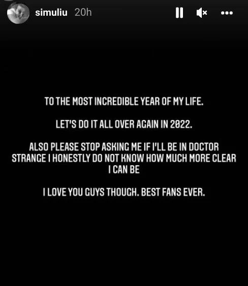 En un reciente post, Liu pidió a los fans que «por favor dejen de preguntarme si estaré en Doctor Strange». En el post de Año Nuevo del actor, donde describió 2021 como «el año más increíble de mi vida», Liu dijo a los fans que «honestamente no sé cuánto más claro puedo ser.» A pesar de su descontento por la frecuente pregunta de si Shang-Chi aparecería en Doctor Strange 2, el actor firmó las cosas de forma desenfadada, diciendo a sus fans que eran los «mejores fans de la historia.» A continuación se puede ver una captura de pantalla de su historia de Instagram: