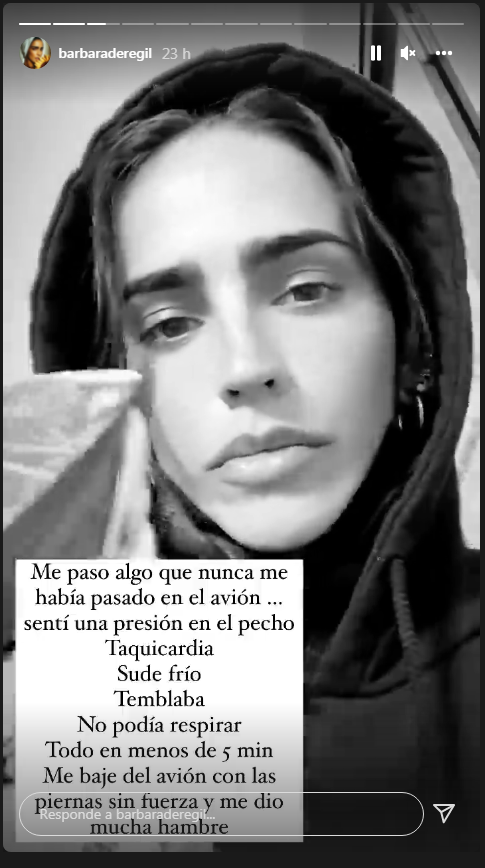 A través de sus historias de Instagram, Bárbara confesó que vivió un ataqué de pánico, algo que jamás le había ocurrido, durante el vuelo de regreso a Ciudad de México, tras sus vacaciones decembrinas.