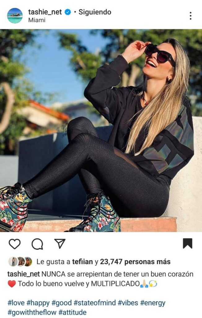 En la descripción del post, Natasha, escribió un mensaje según quienes la siguen era dedicado al papá de su hijo: «NUNCA se arrepientan de tener un buen corazón ♥️ Todo lo bueno vuelve y MULTIPLICADO???».