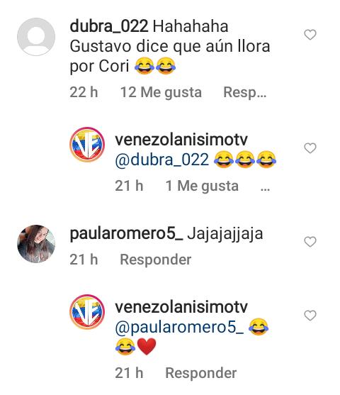 El cantante y exnovio de Corina, Gustavo Elis no se mostró muy convencido con esta noticia y lo dejó en evidencia con un comentario. «Ni Judas se atrevió a tanto», escribió quien hace tan solo semanas se convirtió en padre de su primera bebé, fruto de su amor con Karlis Romero.