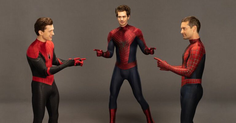 Tom Holland, Andrew Garfield y Tobey Maguire recrean el icónico meme de Spider-Man apuntando en honor al anuncio del lanzamiento de No Way Home en los medios domésticos. Holland asumió el manto del amado lanzarredes para el Universo Cinematográfico de Marvel después de que Maguire abandonara inicialmente el papel con Sam Raimi tras la decepción de Spider-Man 3 y de que Sony desechara la franquicia de Amazing Spider-Man de Garfield debido a la escasa recaudación en taquilla. Sin embargo, al abrirse las puertas del multiverso en Spider-Man: No Way Home, los dos regresarían como sus respectivos Spider-Men.