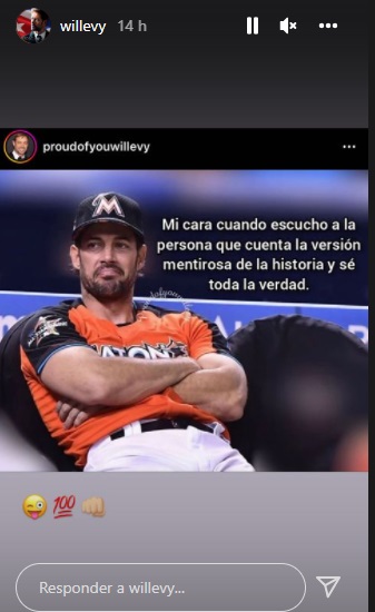 Asimismo, a través de una historia en su cuenta de Instagram Levy publicó una imagen de su cuenta de fans que decía «Mi cara cuando escucho a la persona que cuenta la versión mentirosa de la historia y sé toda la verdad»