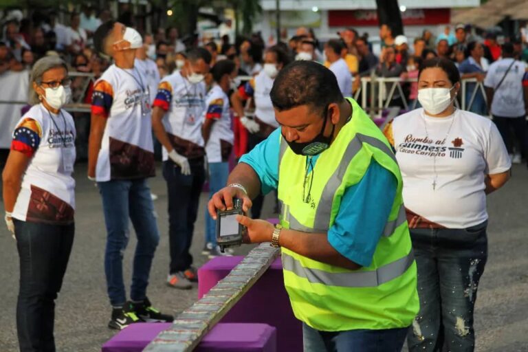 Esta nueva marca mundial, consiste en la elaboración de una línea, conformada por barras de chocolate comercial Chocopito, midió 854 metros con 30 centímetros de largo, se utilizaron 4 mil 289 barras y más de 600 caripiteños, fueron los responsables de inmortalizar este momento histórico para la capital del municipio Bolívar.