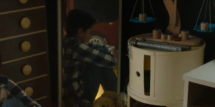 La habitación de la infancia de Marc Spector está llena de los típicos cachivaches de un joven: cohetes, coches, figuras de acción de Tomb Buster, etc. Un poco más extraño es el conjunto de balanzas de juguete a la derecha del espejo de cuerpo entero de Marc. Estas, por supuesto, presagian ominosamente el viaje de Marc y Steven por el más allá con Taweret. No está claro si Marc poseía realmente este juguete cuando era niño, o si las escamas (así como los juncos y el esqueleto del pájaro Khonshu) sólo están presentes porque estos recuerdos se ven desde el otro lado del velo.