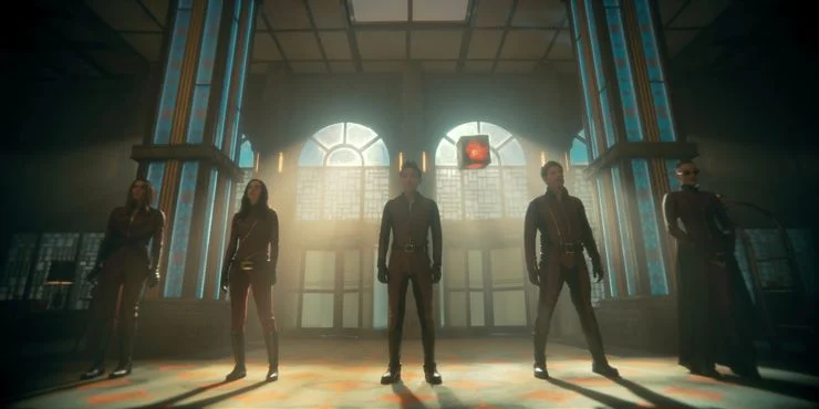 Netflix ha publicado trece imágenes que adelantan la tercera temporada de The Umbrella Academy, con tomas de varios episodios. Además de las imágenes que recrean el cliffhanger del final de la segunda temporada y que muestran a los hermanos Hargreeves en el nuevo presente, Netflix también ha compartido imágenes de la Academia Sparrow contraria. Esto incluye vistazos a Ben, Marcus (Justin Cornwell), Fei (Britne Oldford), Alphonso (Jake Epstein), Sloane (Genesis Rodriguez) y Jayme Hargreeves (Cazzie David) con sus uniformes de la Academia Sparrow, así como más tomas individuales del equipo. La serie de imágenes también incluye imágenes de Reginald, de su compañera con superpoderes Lila Pitts (Ritu Arya) y del personaje de la estrella de Euphoria, Javon Walton, actualmente desconocido. Mira las trece imágenes a continuación.