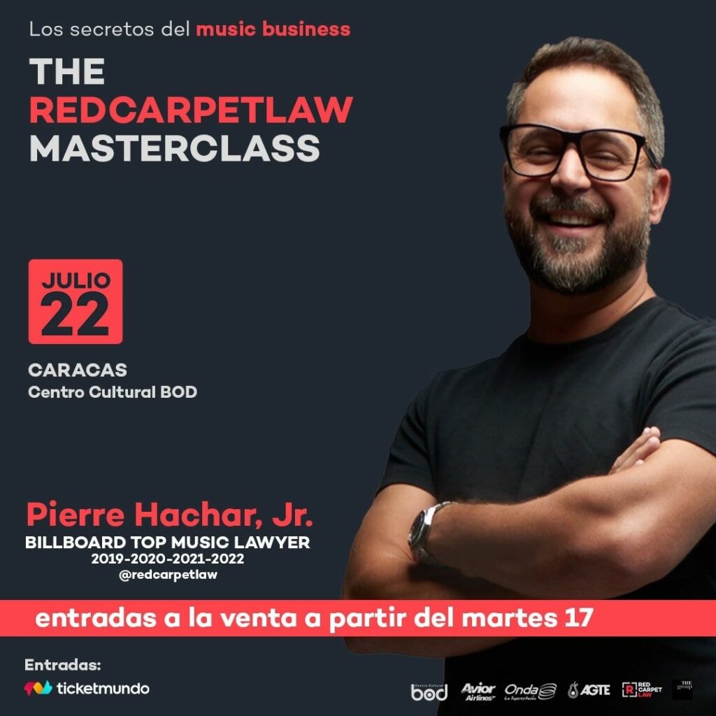 “The RedCarpetLaw Masterclass: Los secretos del music business” 22 de julio en el Centro Cultural BOD es una producción de AGTE Live y Ventura Producciones. Entradas a la venta en la plataforma de Ticket Mundo.