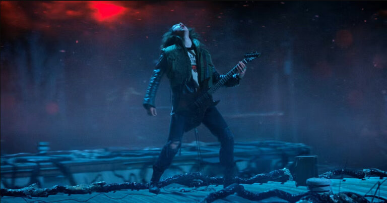 En un nuevo video, las estrellas de Stranger Things, Joe Keery y Maya Hawke ven la escena en la que su coprotagonista Joseph Quinn destroza la guitarra al ritmo de «Master of Puppets» de Metallica. Quinn interpreta al Eddie Monson de la cuarta temporada, el líder del club Dungeons & Dragons Hellfire del instituto Hawkins. Después de que Eddie sea testigo del brutal asesinato de Chrissy (Grace Van Dien), el villano de la temporada, pasa gran parte de la temporada huyendo de las autoridades antes de unirse a la banda para acabar con Vecna. Con Dustin (Gaten Matarazzo), Eddie distrae a Vecna para dar tiempo a los demás a matarlo, y finalmente coge su guitarra y estalla en el riff «Master of Puppets» para mantener a raya a los monstruos de Vecna.