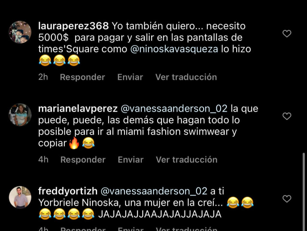 Esto ha despertado críticas, ya que muchos usuarios están claros que decir que esto es un logro es una contundente mentira; pues se dice que una publicidad no mide los méritos de un artista. También llama poderosamente la atención que en la cuenta de Ninoska borran todas las interacciones que son negativas, pero como los internautas son más fuertes, acá te dejamos algunas evidencias.