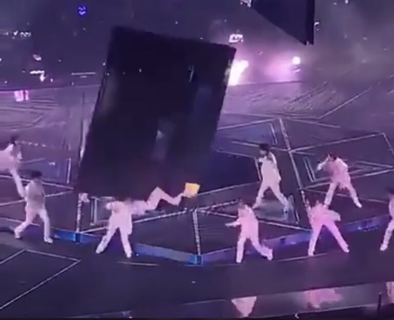 Un pantalla de video gigante se cayó por accidente durante un concierto de la banda Mirror en Hong Kong y aplastó a uno de los bailarines. Mientras que otro resultó levemente herido.