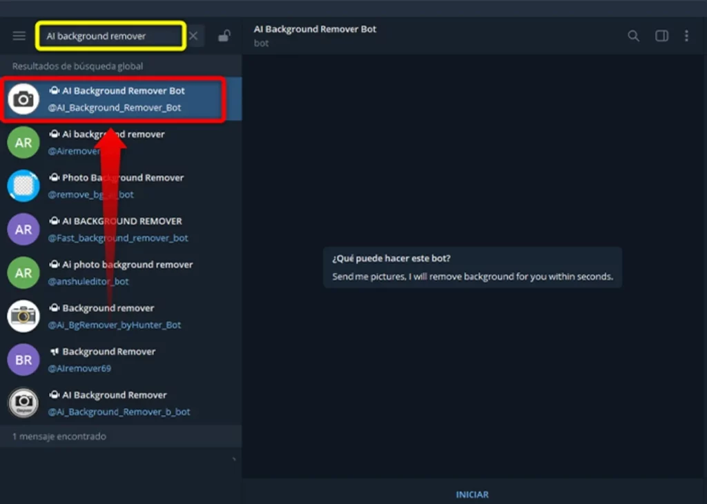 Además, es posible usarlos en grupos, en canales y de forma individual, entre ellos existe uno en particular cuyo nombre es «AI background remover».