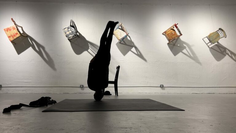 El fotógrafo, durante quince minutos, mostró su lado más histriónico y circense conjugando fotografía, música, danza, yoga, y contorsión, teniendo como marco la experiencia migratoria. En el acto se le pudo apreciar tocando bajo eléctrico, contorsionó su cuerpo con la flexibilidad de una plastilina, se autorretrató con una cámara instantánea en escena y hasta bailó bolero con una silla de madera luego de recrear hazañas y ejercicios de respiración.